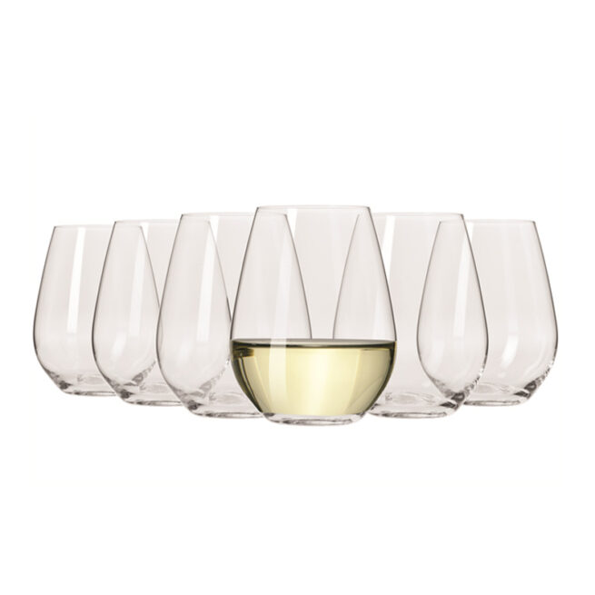 Enjoy your daily glass of wine, or a glass with guests using these wine glasses with flair. The stemless nature make for a nice casual drink with friends, while retaining the shape ideal for a great glass of wine.