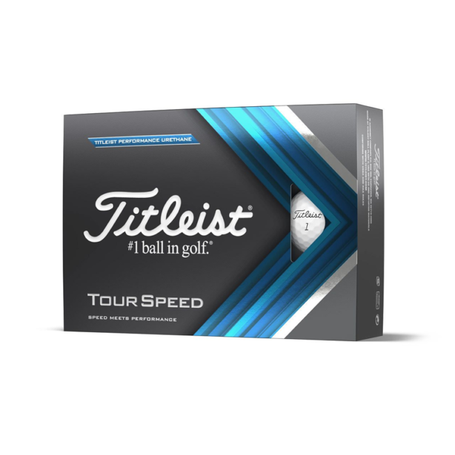 Titleist® Tour Speed is a multilayer, TPU covered golf ball providing exceptional distance in the long game and precise short game scoring control.